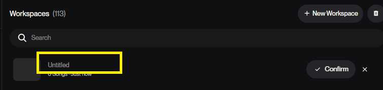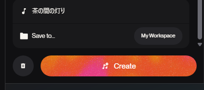 SUNO AIの左メニューで Create → New Workspace を選択します。
