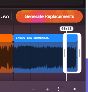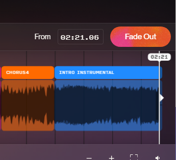 画面下にゾーンが表示されますの一番右の(曲最後)の部分でFADE OUTしたい範囲を選択しGenerateボタンをクリックする
