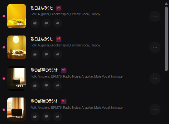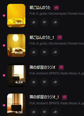 私はまず 10回連続で生成(=20曲) してしまいます。