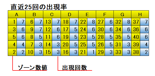 各ゾーン5個 × 8ゾーン=40個の数字の出現バランスから分析する必要があります。