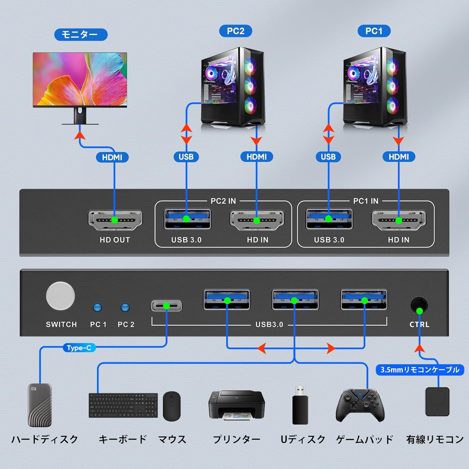 市販のKVM切り替え機では