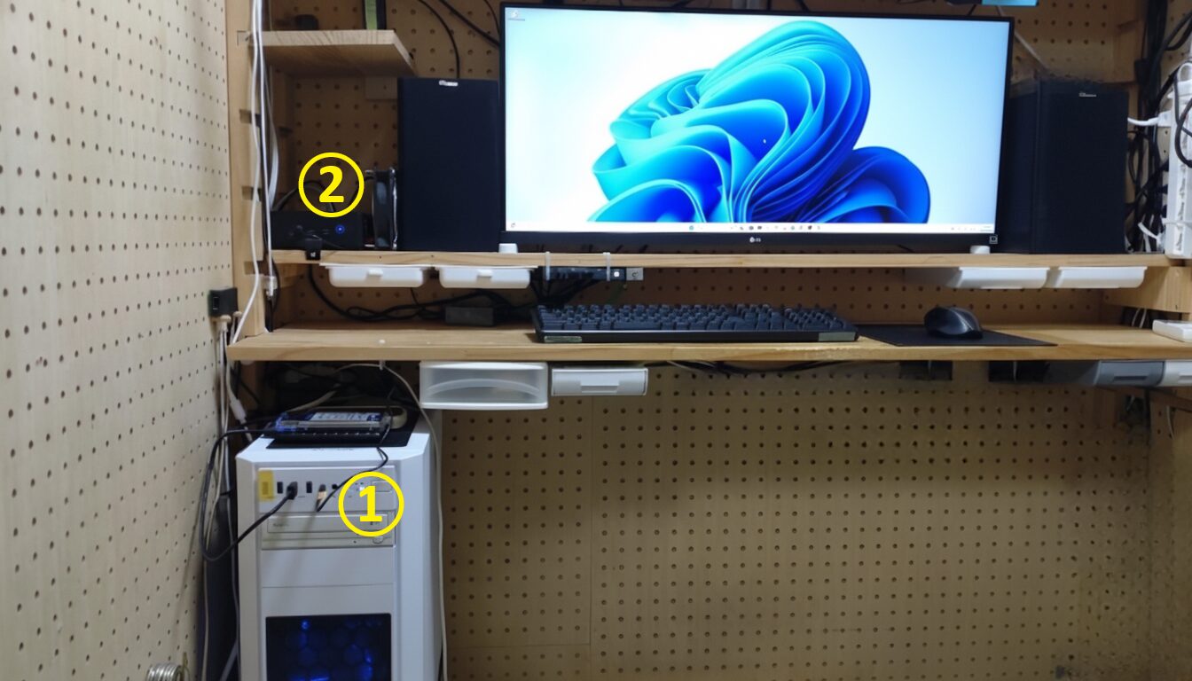 👉 2台のPCをKVM切り替え機で物理的に切り替えて使用