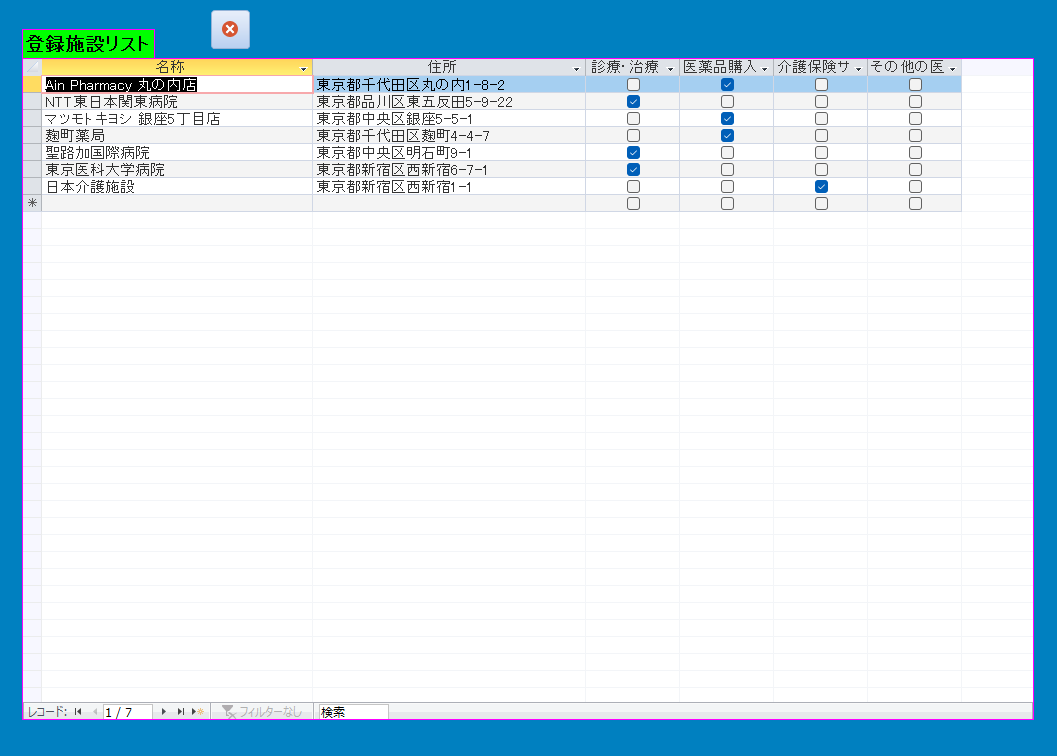 • 医療機関は名称・住所・区分を登録