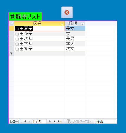 家族全員の氏名と続柄を管理します。