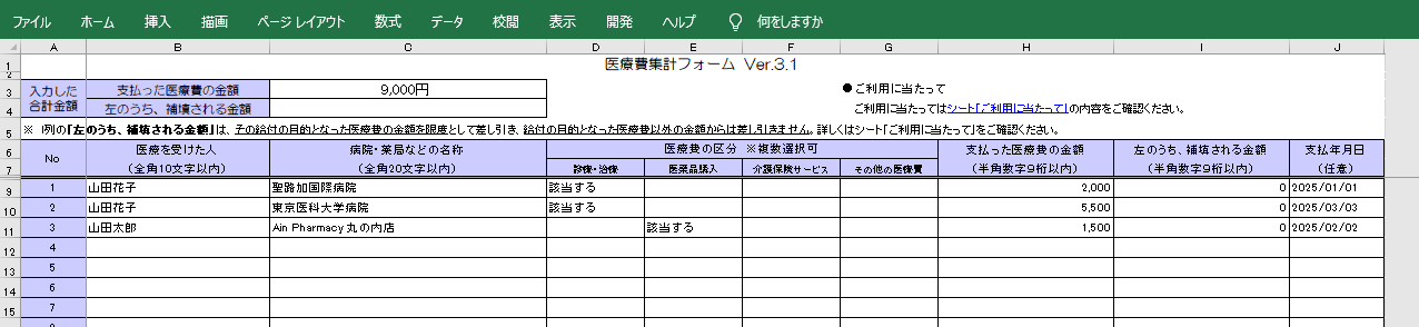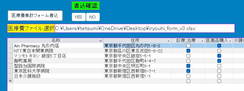 iryouhi_form_v3.xlsx(医療費集計フォーム)へ一括書き込み